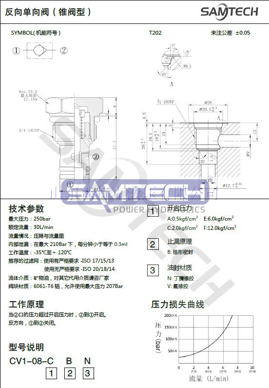 螺紋反向單向閥CV1-08/FDF06(錐閥型)/液壓螺紋插裝閥